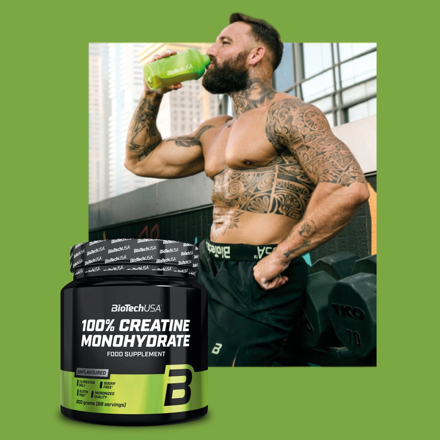 Creatine increases your performance in short-duration, high-intensity exercise. The beneficial effect is obtained with a daily intake of 3g of creatine. 100% Creatine Monohydrate is prepared with pure, pharmaceutical-grade creatine in powder form. It's flavorless, making it easy to mix with other supplements, such as weight gainers and protein shakes. Like all BioTechUSA products, 100% Creatine Monohydrate is a safe and carefully selected nutrient.