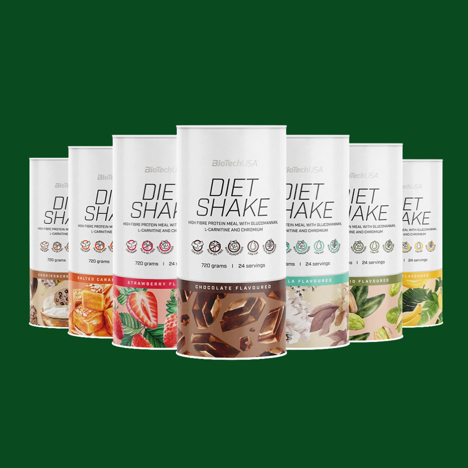 Diet Shake fits perfectly into a low-calorie diet, as, with water, it contains a maximum of 110 kcal per serving (depending on the flavor). This makes it a great option at any time of day to complement your meal. If you're hungry and want a quick and delicious solution, make your favorite shake, add 300 ml of water, shake well, and drink!