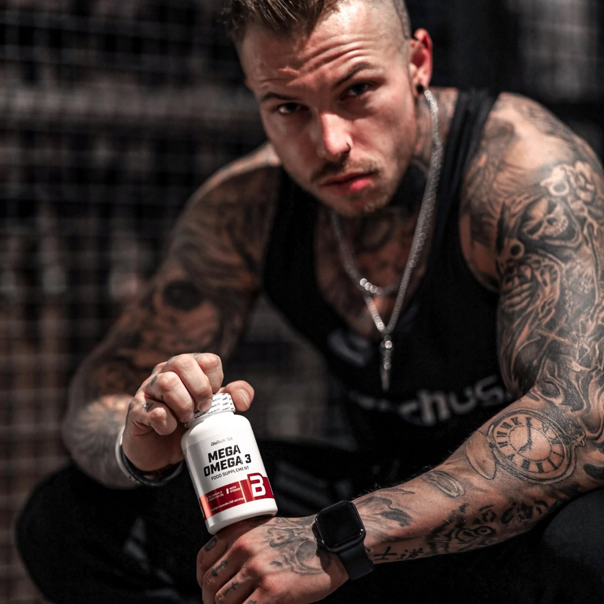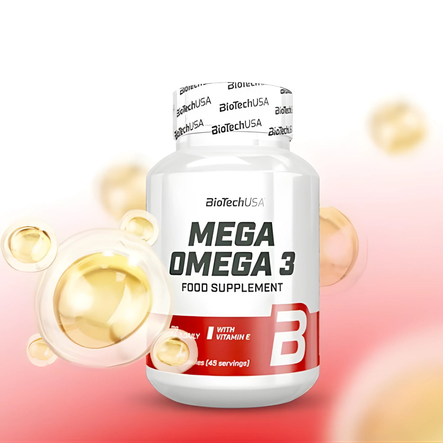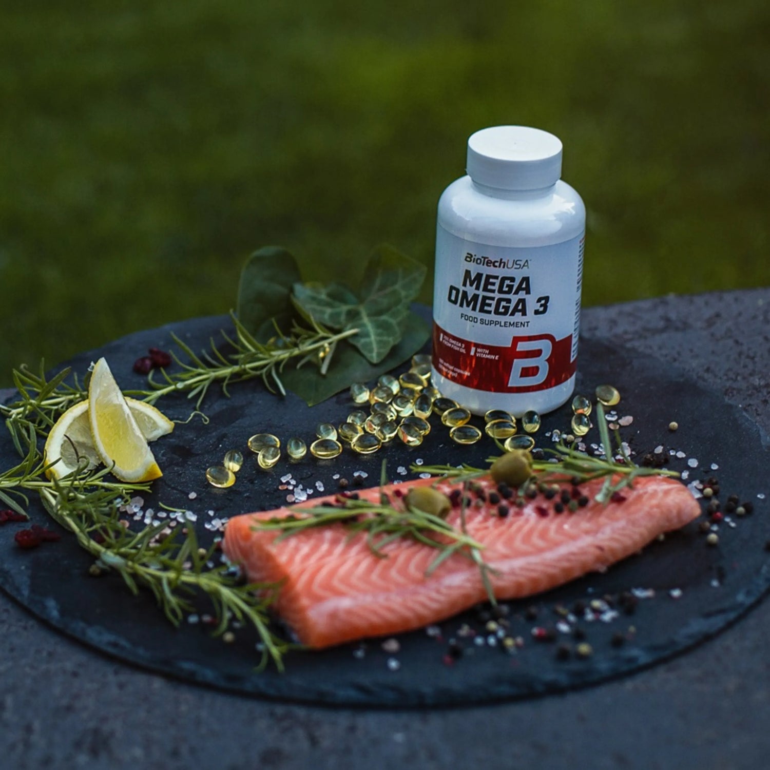 Super Vitamin Mega Omega 3, with 1000 mg of fish oil per serving, 70% content of omega-3 fatty acids EPA and DHA, with added vitamin E.